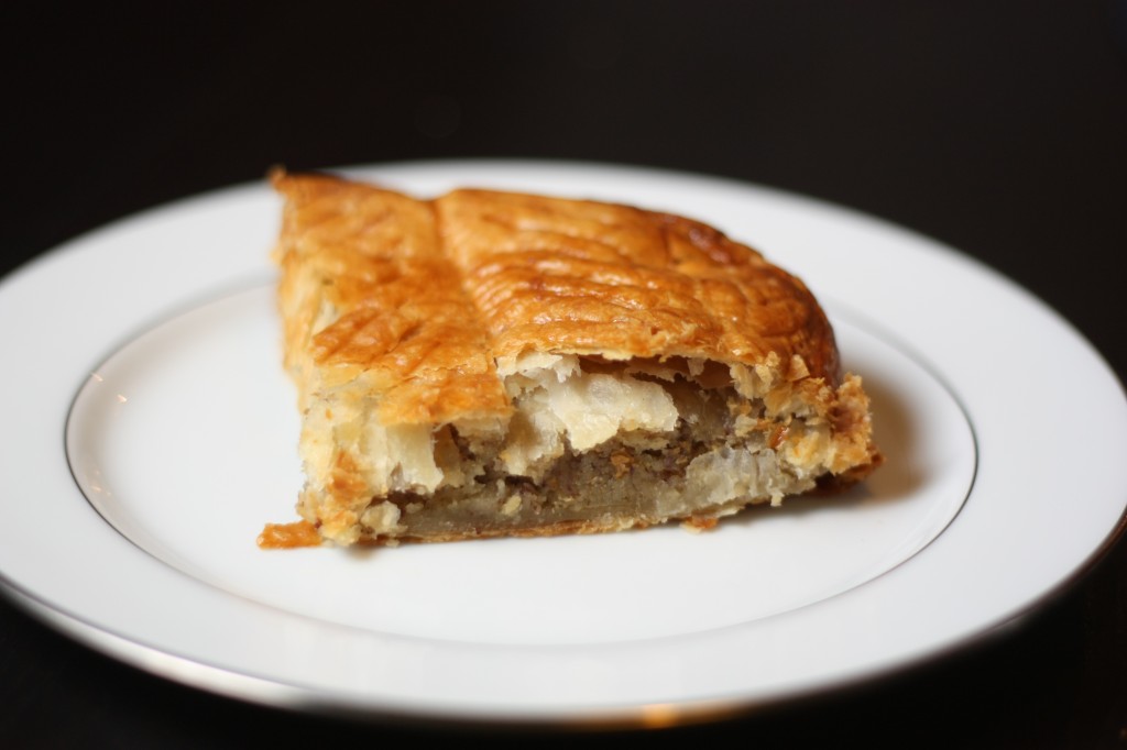 Pas de panique en ce qui concerne le goût : elle est Bio certes, mais pas de crème d’avoine ni de tofu soyeux à la place de la frangipane ! Ici la frangipane est juste un peu plus sombre que celle dont on a l’habitude car les amandes sont broyées avec leur peau. Cette galette est très bonne, le feuilletage bien croustillant et le goût de beurre présent.