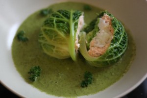 Chou farçi au saumon découpé