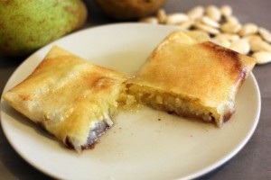Brick amande poire chocolat coupe