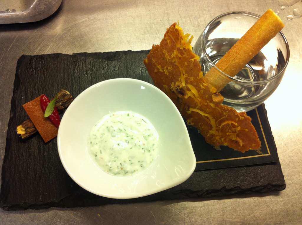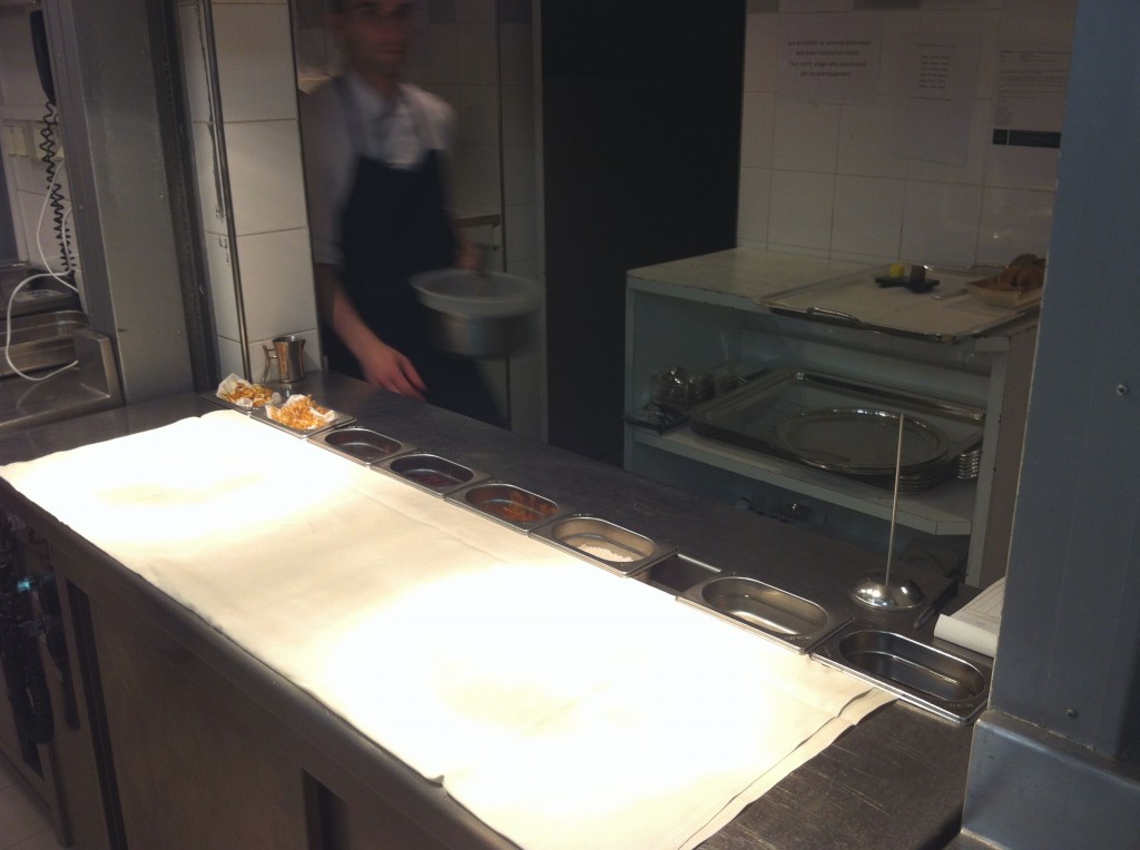 Il s’agit de cuisine plutôt française traditionnelle, avec parfois un brin d’exotisme comme ce soir ou marinade japonaise et wasabi se sont invités dans les sachets en papier. Les produits sont de saison, frais, en provenance des commerces du quartier : les courses sont faites chaque matin.